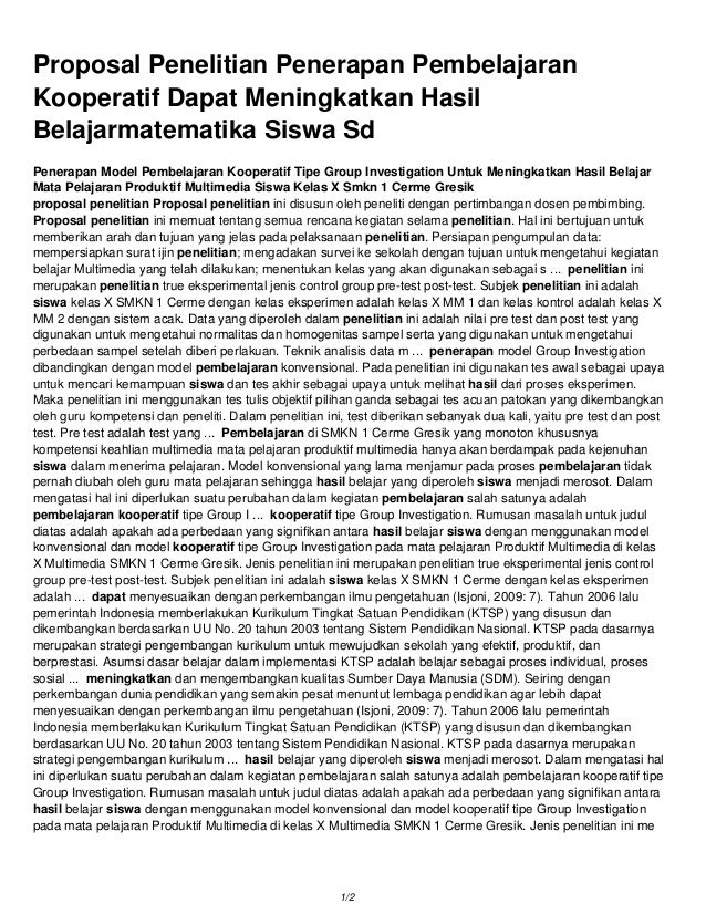 Proposal Penelitian Penerapan Pembelajaran Kooperatif via slideshare.net